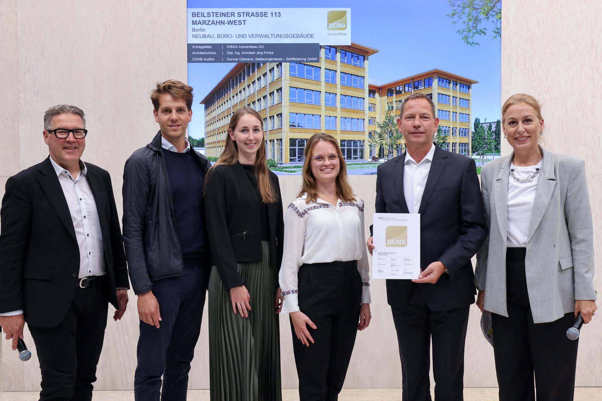 Im Rahmen der Expo Real in München vom 4. bis 6. Oktober 2023 wurde der DIBAG Industriebau AG für den geplanten Bürogebäude „Beilsteiner Straße 113″ in Berlin-Marzahn das Vorzertifikat DGNB Gold verliehen.
