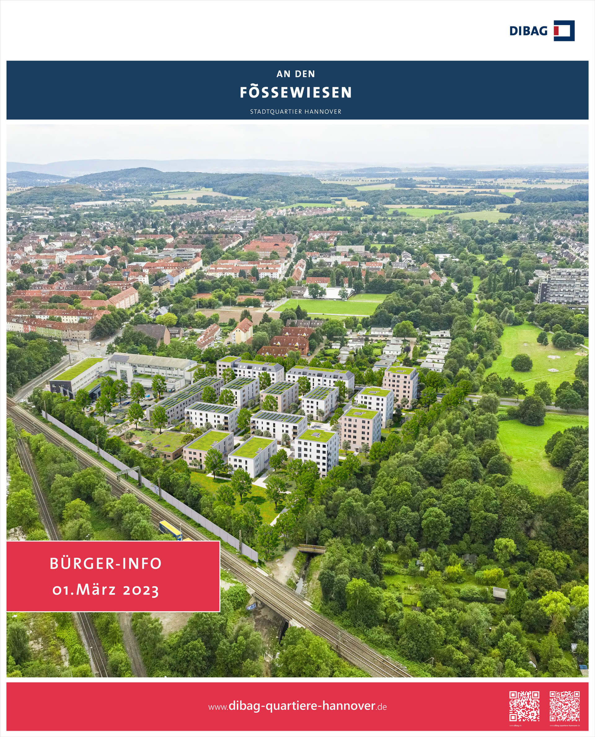 Seit einigen Jahren arbeitet die DIBAG Industriebau AG an der Entwicklung des rund 26.000 m² großen Grundstücks An den Fössewiesen im Westen der Stadt Hannover. Hier sollen zukünftig in insgesamt 285 barrierefreien Wohnungen Studierende, Familien sowie Senioren ihr neues Zuhause finden. Dreißig Prozent der Wohnungen werden als mietpreisgebundene Förderwohnungen gleichmäßig im Quartier verteilt. Auch gut geschnittene 5-Zimmer-Wohnungen für größere Familien werden angeboten. Der Satzungsbeschluss des Bebauungsplanes wurde am 23.03.2023 gefasst.