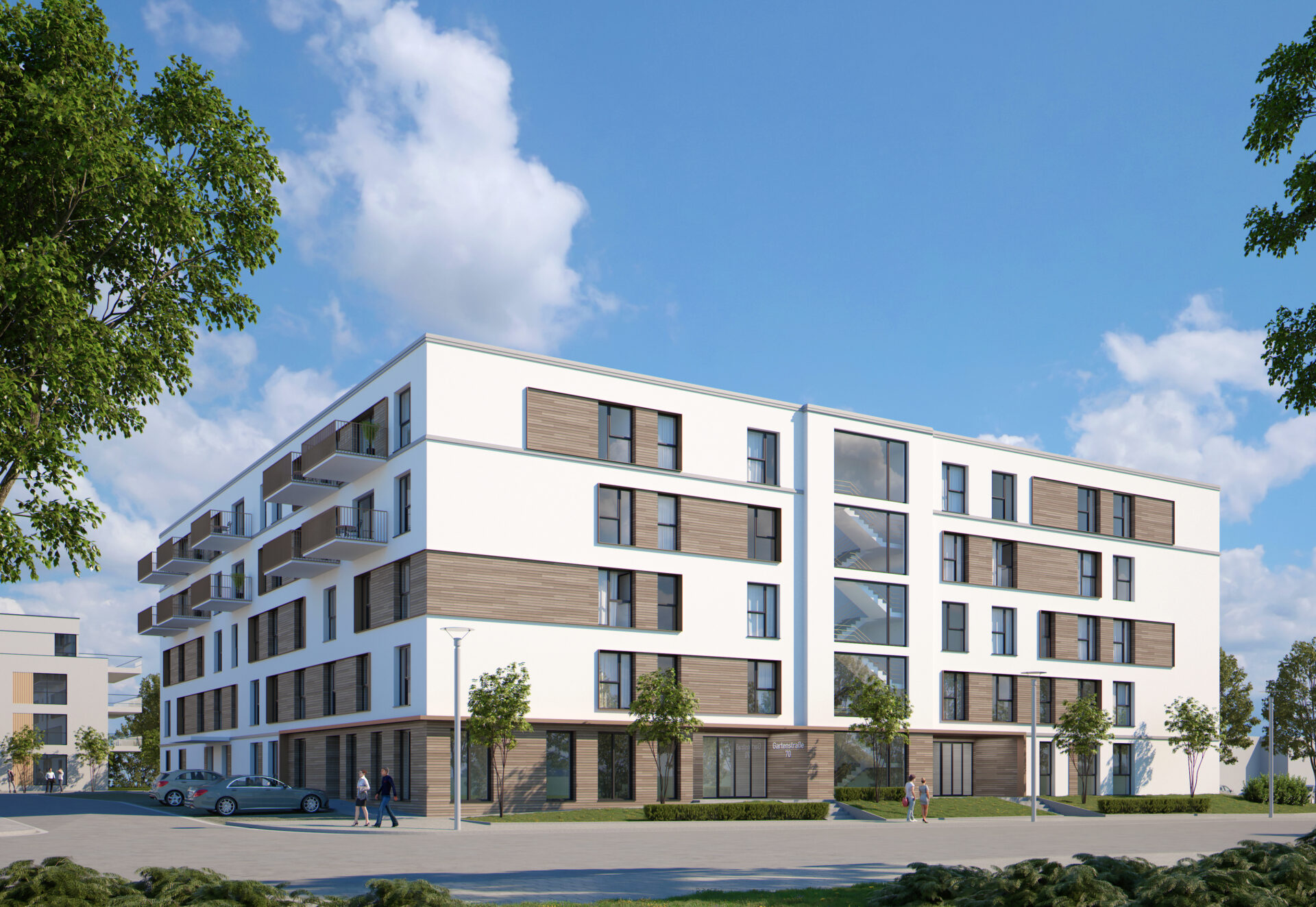 Der erste Bauabschnitt im Stadtquartier Obere Walke in Backnang ist damit abgeschlossen. Auch die Herstellung des notwendigen Retentionsraums (Hochwasserschutz) entlang des Plangebiets ist nahezu fertiggestellt. Da die Baugenehmigungen für die folgenden Bauabschnitte bereits vorliegen, kann sich die DIBAG nun auf die Umsetzung des 2. Bauabschnitts mit knapp 100 Wohnungen sowie einem Ärzte- und Bürohaus konzentrieren.